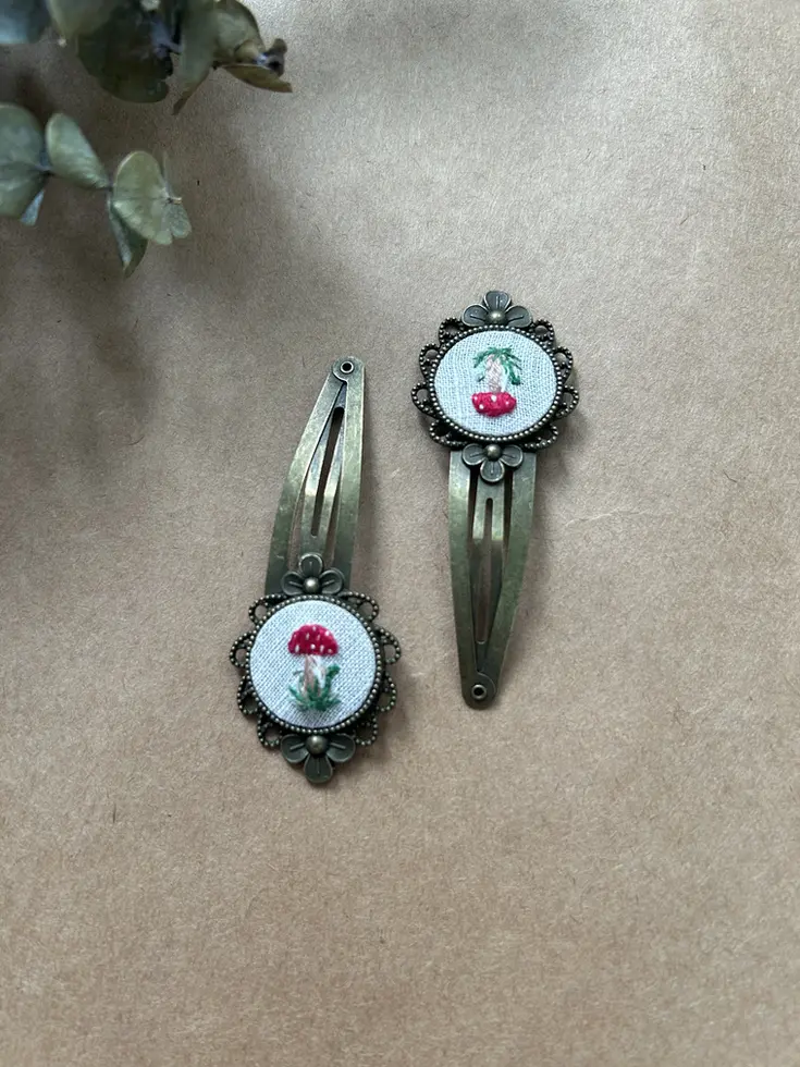 Hand embroidered on cotton muslin using anchor cotton thread. Material Used - Zinc-Alloy with Brass Water Plating Care instructions -After use keep them into box/zip lock bag to prevent any damage. -Do not mix them with any other stuff. If it's get dirty gently clean it using just water (wash the pendant only) and absorb the extra water with tissue paper & put it in open place to dry, not in direct sunlight. Do not wash them too often. -As it's a metal. It might turn blackish over time, but if you follow the care instructions it will stay good for long time. -If it gets lost or damage, we always have a new piece for you.